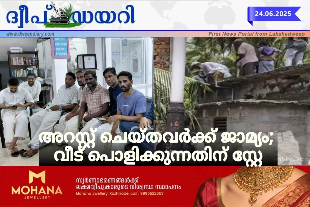 അമിനി : പൂക്കുഞ്ഞി ആശാരോടയുടെ വീട് ഗവൺമെൻ്റ് ലാൻ്റിനാണെന്ന് കാണിച്ച് പൊളിക്കാൻ വന്ന പോലീസുകാരെ തടയാൻ ശ്രമിച്ചതിനെ തുടർന്ന് അറസ്റ്റ് വരിച്ച കോൺഗ്രസ് പ്രവർത്തകർക്ക് ജാമ്യം അനുവദിച്ചു. അമിനി ഫസ്റ്റ് ക്ലാസ് മജിസ്ട്രേറ്റാണ് ജാമ്യം അനുവദിച്ചത്. വീട് പൊളിക്കുന്നതിന് ഹൈക്കോടതി സ്റ്റേ നൽകിയതിനെ തുടർന്ന് വീട് പൊളിക്കൽ നടപടികളും താൽക്കാലികമായി നിർത്തിവെച്ചു. കവരത്തിയിൽ നിന്നും കടമത്തിൽ നിന്നും സി.ആർ.പി. എഫുകാരെ എത്തിച്ചെങ്കിലും വലിയ പ്രക്ഷോപമില്ലാതെ കാര്യങ്ങൾ അവസാനിച്ചു.