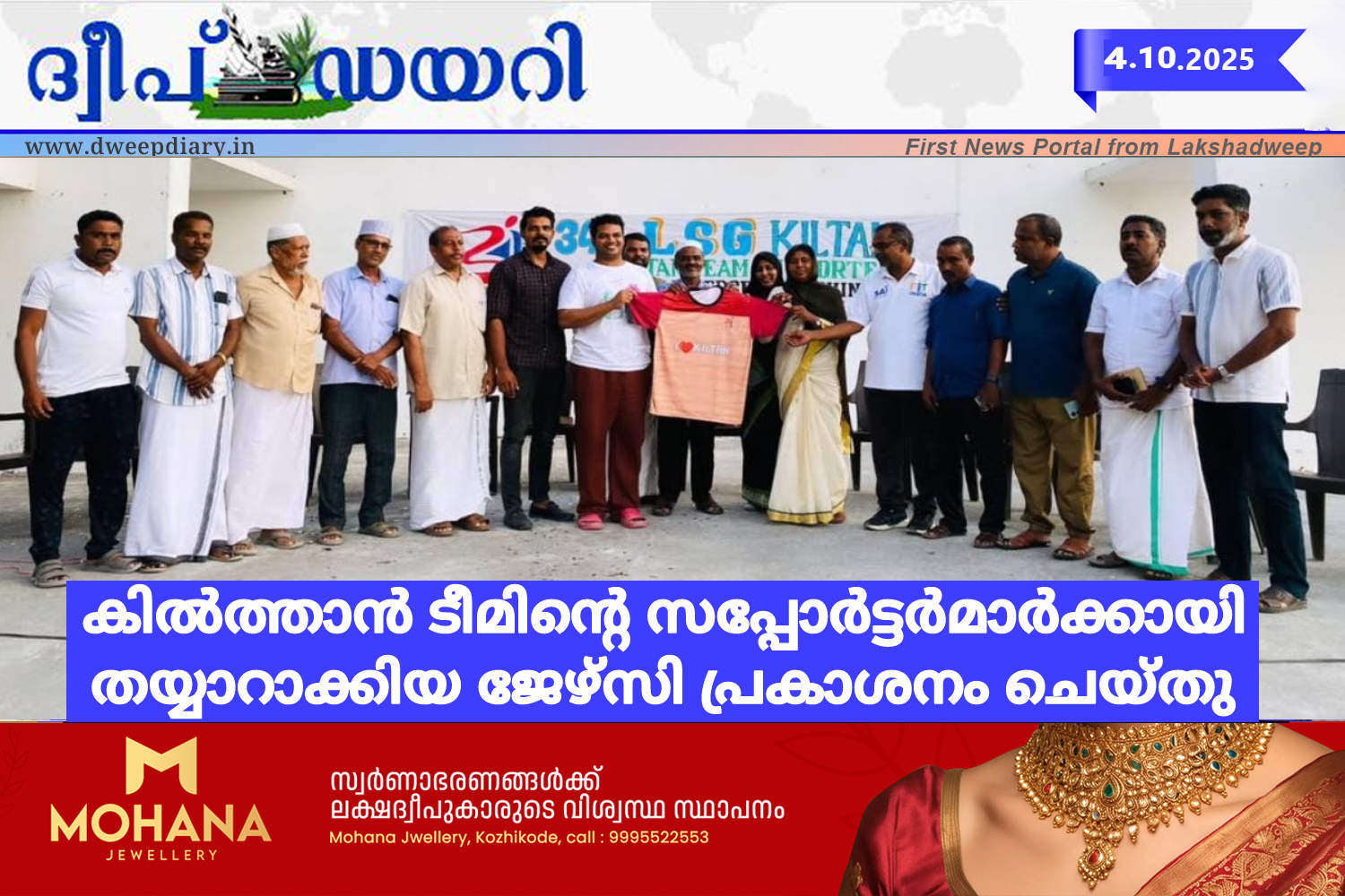 34-ാമത് ലക്ഷദ്വീപ് സ്കൂൾ ഗെയിംസിനോടനുബന്ധിച്ച് കിൽത്താൻ ഐലൻഡ് ടീമിന്റെ സപ്പോർട്ടർമാർക്കായി തയ്യാറാക്കിയ ജേഴ്സിയുടെ പ്രകാശനം നടത്തി.