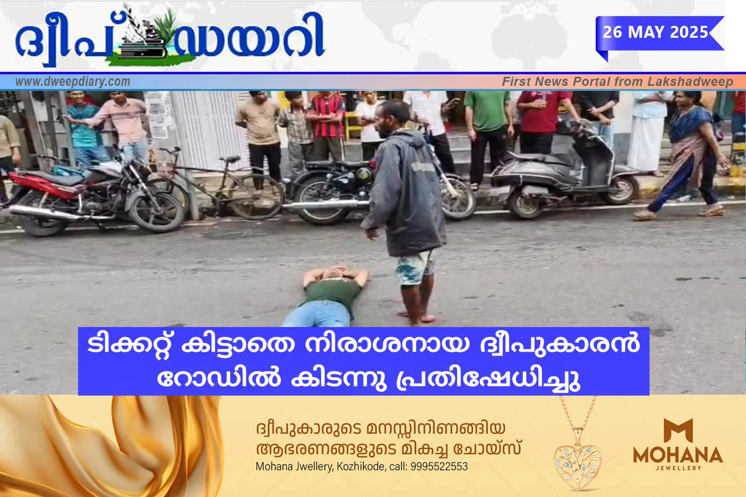 ടിക്കറ്റ് കിട്ടാതെ നിരാശനായ ദ്വീപുകാരൻ റോഡിൽ കിടന്നു പ്രതിഷേധിച്ചു
