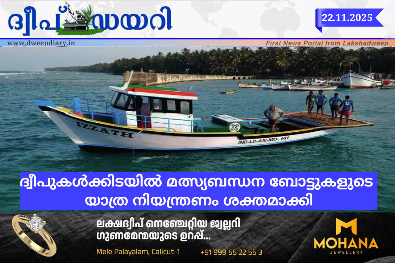 ലക്ഷദ്വീപ് ദ്വീപുസമൂഹത്തിൽ മത്സ്യബന്ധന വള്ളങ്ങളുടെ ഗതാഗതത്തിൽ കർശന നിയന്ത്രണം ഏർപ്പെടുത്തുന്നതിനായി Lakshadweep Marine Fishing Regulation, 2000-നും ബന്ധപ്പെട്ട Rules, 2001-നും അനുസൃതമായി ഭരണകൂടം പുതിയ നിർദ്ദേശങ്ങൾ നടപ്പാക്കി. ഇനി മുതൽ ഒരു മത്സ്യബന്ധന വള്ളം ഒരു ദ്വീപിൽ നിന്ന് മറ്റൊരു ദ്വീപിലേക്ക് യാത്ര ചെയ്യുന്നതിന് മുമ്പ്, *“Intimation Letter for Fishing Vessel Movement”* എന്ന ഔദ്യോഗിക അറിയിപ്പ് ബന്ധപ്പെട്ട അധികാരിക്ക് നിർബന്ധമായും സമർപ്പിക്കേണ്ടതുണ്ട്.