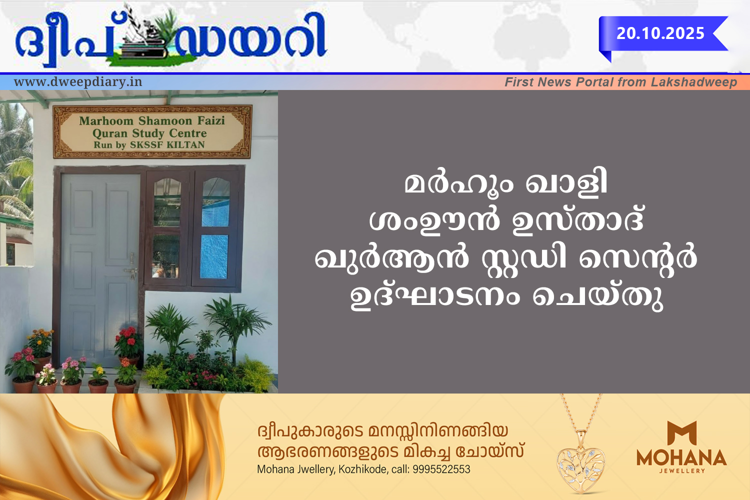 കിൽത്താൻ: പലസ്തീൻ ഐക്യധാർഡ്യം പ്രഖ്യാപിച്ച് ഔട്ട് ബോർഡ് റാലി സംഘടിപ്പിച്ചു. പലസ്തീൻ പതാകകൾ ഉയർത്തിയ തോണികളിൽ പങ്കെടുത്തവർ ജെട്ടിയിൽ നിന്നും പുറപ്പെട്ട് കോക്കഫുളുക്കിയാർ കടപ്പുറത്തിലൂടെ പര്യടനം നടത്തി വീണ്ടും ജെട്ടിയിൽ എത്തിയാണ് റാലി സമാപിച്ചത്.