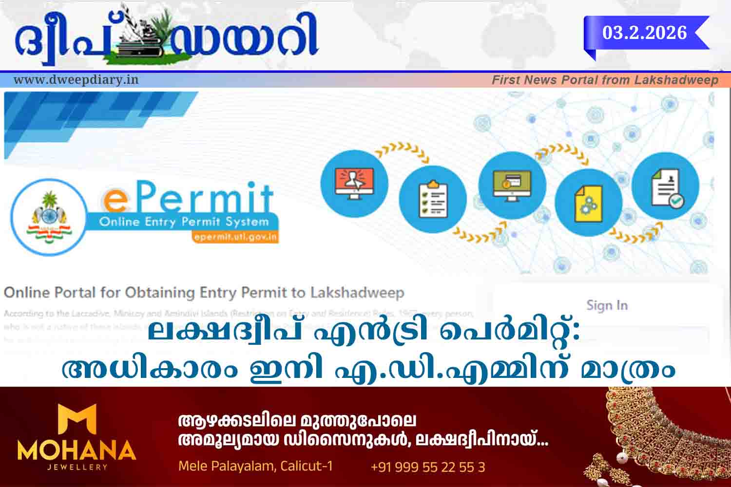 - ഏകജാലക സംവിധാനം: നിലവിൽ ചില ദ്വീപുകളിൽ ഡെപ്യൂട്ടി കളക്ടർമാരും (DCs) ബ്ലോക്ക് ഡെവലപ്മെന്റ് ഓഫീസർമാരും (BDOs) പെർമിറ്റുകൾ പുതുക്കി നൽകുന്നതായി ശ്രദ്ധയിൽപ്പെട്ടതിനെത്തുടർന്നാണ് ഈ നടപടി. ഇനി മുതൽ കവരത്തി കളക്ടറേറ്റിലെ അഡീഷണൽ ഡിസ്ട്രിക്റ്റ് മജിസ്ട്രേറ്റ് (ADM) മാത്രമായിരിക്കും പെർമിറ്റ് നൽകാനുള്ള ഏക അതോറിറ്റി.