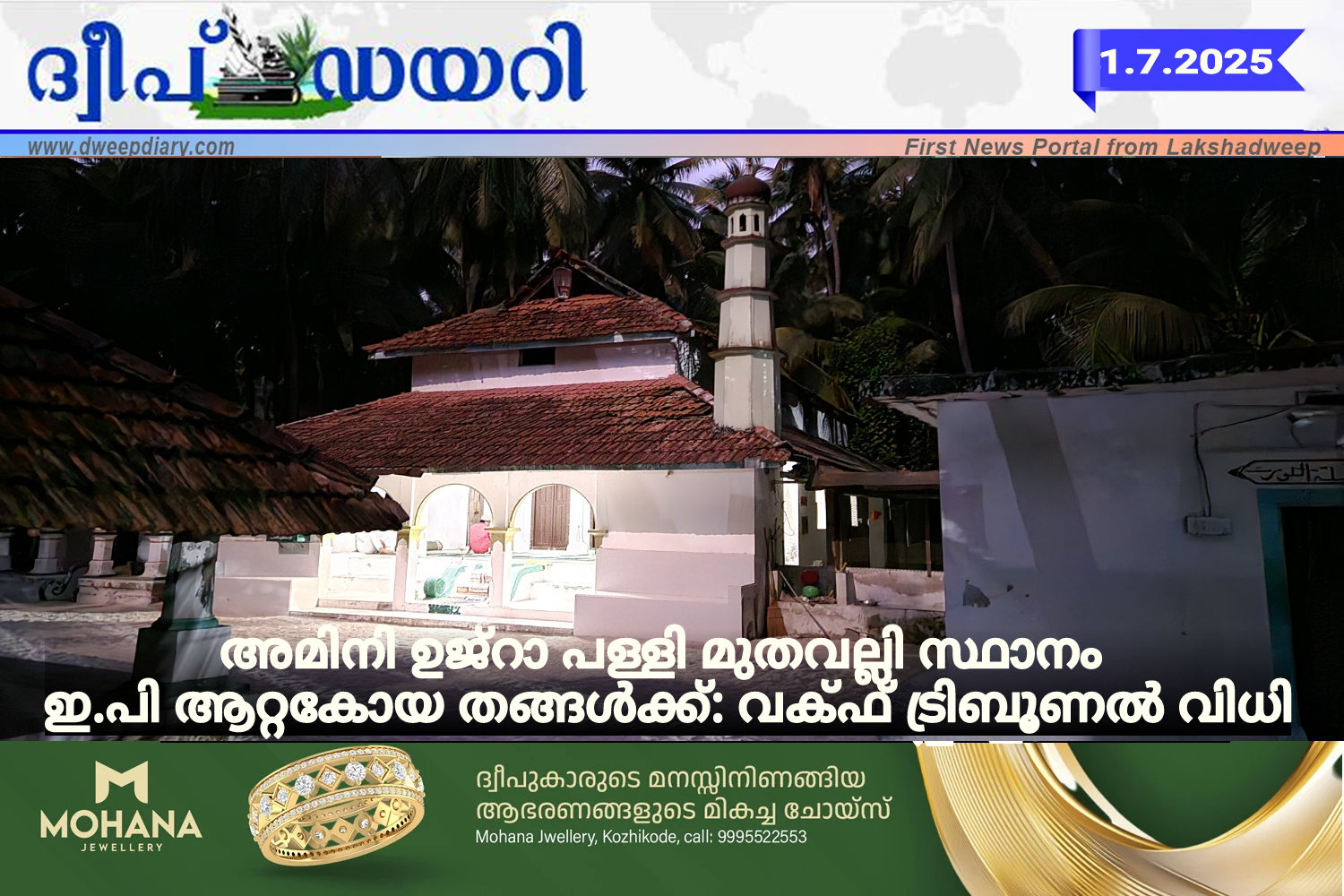 അമിനി ജുമാമസ്ജിദിൽ വഫാത്ത് ദിനത്തിൽ യാസീൻ പാരായണവും നടക്കുന്നു.