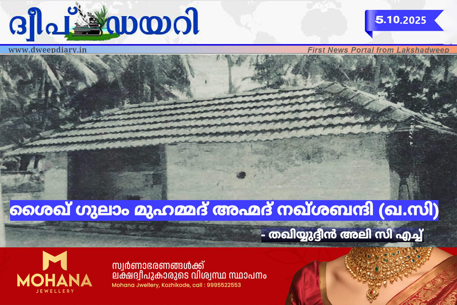 ലക്ഷദ്വീപിലെ മതവൈജ്ഞാനിക രംഗത്ത് ചിരസ്മരണീയമായ നാമമാണ് ശൈഖ് ഗുലാം മുഹമ്മദ് അഹ്മദ് നഖ്ശബന്ദ് (ഖ.സി).